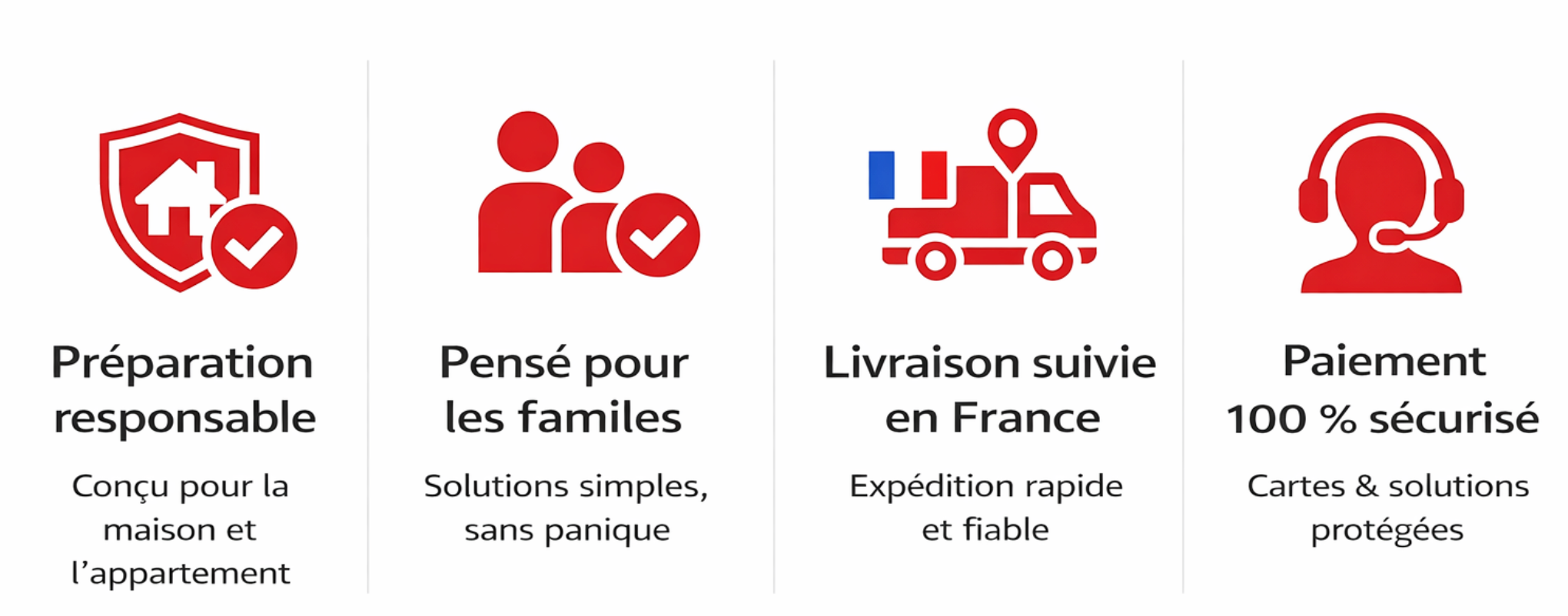 Une marque française née d’une volonté simple : sélectionner uniquement l’essentiel, utile et fiable, pour faire face aux situations réelles du quotidien.