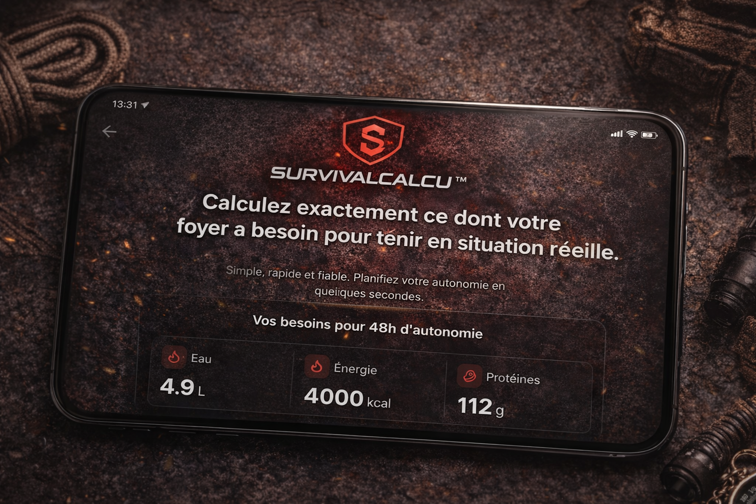 En quelques secondes, découvrez exactement la quantité d’eau et de nourriture nécessaire selon votre situation.